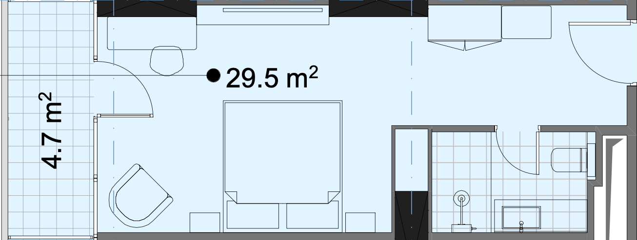 This panoramic apartment feels spacious, elegant, and resort-like, combining a large interior with a distinctive curved terrace. Compared to the smaller panoramic unit, it offers greater comfort, better zoning, and a more luxurious guest experience, ideal for longer stays or guests seeking a flagship Radisson Blu room category.